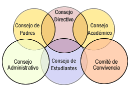 - Colegio: Consejo Directivo – Consejo Académico – Consejo de Padres – Consejo de Estudiantes, Consejo Administrativo y Comité de Convivencia.